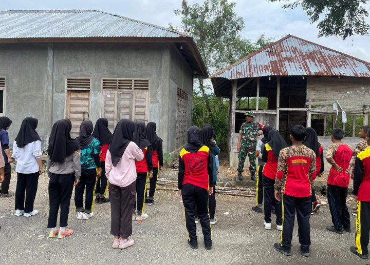 Batang Onang - Demi suksesnya pelaksanaan upacara peringatan hari Proklamasi Kemerdekaan Republik Indonesia (RI), Babinsa Koramil 07/Sosopan Kodim 0212/Tapsel Serda Safruddin Siregar dan Serda Dendi D. Sidabutar terus melatih anggota Pasukan Pengibar Bendera (Paskibra) dari SMAN 1 Batang Onang