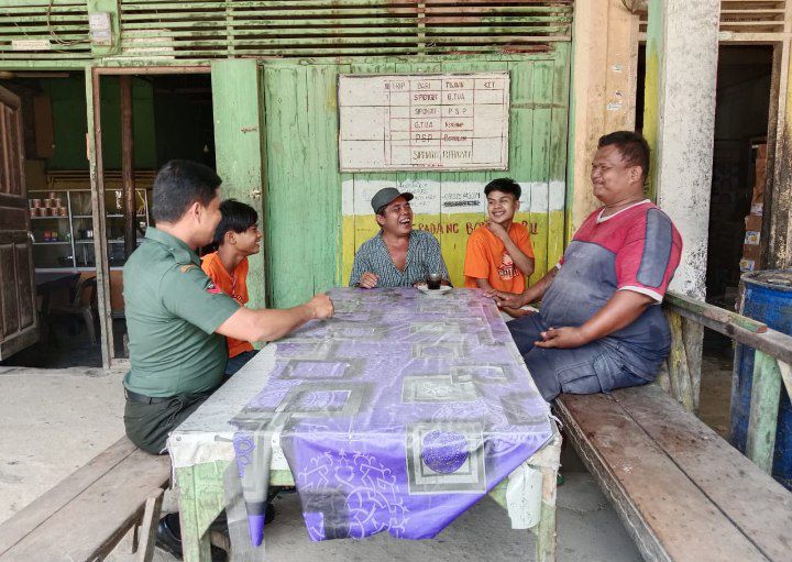 Dolok - Babinsa Koramil 06/Dolok Kodim 0212/Tapsel Koptu Dirham Harahap melaksanakan Komunikasi Sosial (Komsos) menciptakan keakraban dengan warga masyarakat di Desa Pagaran Siregar Kecamatan Dolok Kabupaten Padang Lawas Utara, Selasa (13/08/2024)