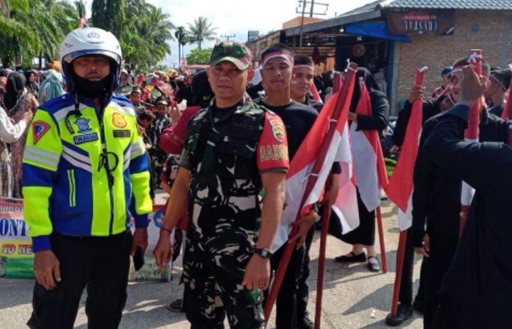 Muara Batang Gadis – Babinsa Koramil 17/Natal Kodim 0212/Tapsel Kopda Warso menghadiri dan melaksanakan pengamanan kegiatan Karnaval Kemerdekaan dalam rangka menyambut dan memeriahkan Hari Proklamasi Kemerdekaan Republik Indonesia (RI) ke-79 Tahun 2024 di Desa Tabuyung Kecamatan Muara Batang Gadis Kabupaten Mandailing Natal, Kamis (15/08/2024)