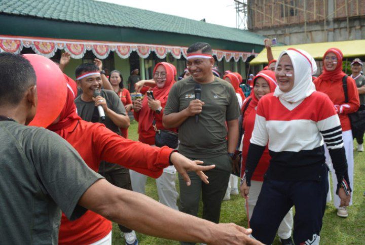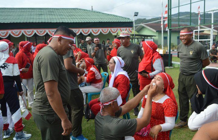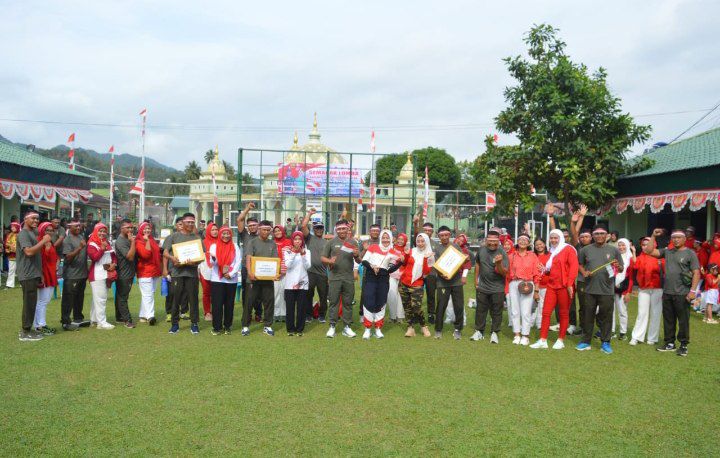 Padangsidimpuan - Dalam rangka memeriahkan HUT Kemerdekaan RI Ke-79, Kodim 0212/Tapsel menggelar kegiatan Semarak lomba ceria yang diikuti seluruh Prajurit-PNS dan ibu-ibu Persit KCK Cab XLV Kodim 0212, yang berlangsung di lapangan Volley Makodim 0212/Tapsel Jln Imam Bonjol Kec. Padangsidimpuan Selatan Kota Padangsidimpuan, Senin (19/08/2024)