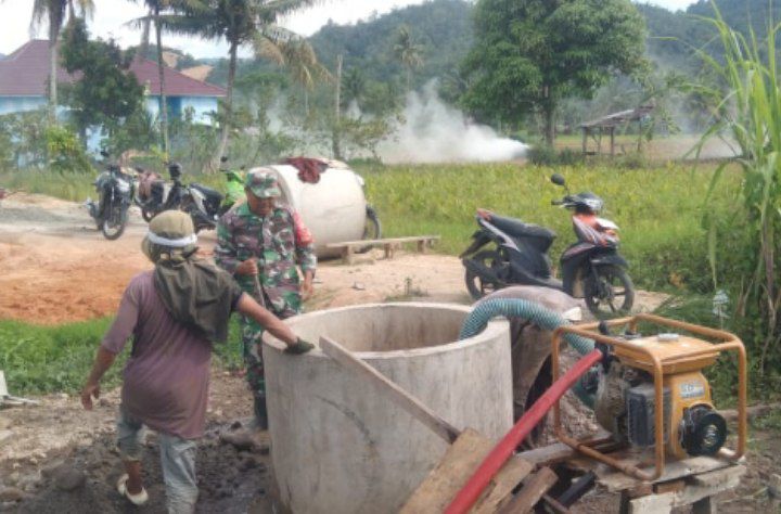Babinsa Sertu Yahya menyebutkan, di lokasi belum ada saluran air bersih dari PDAM sehingga perlu dibuat sumur untuk memenuhi kebutuhan air bersih