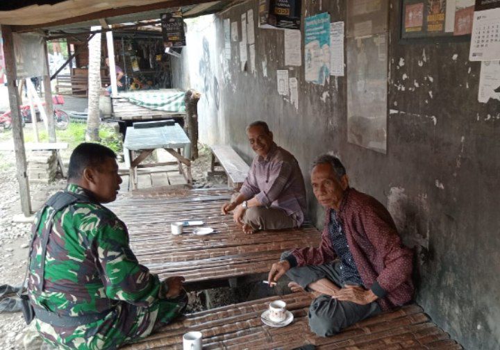 Kegiatan komsos tersebut dilaksanakan di salah satu warung kopi yang rumah warga yang merupakan sesepuh desa