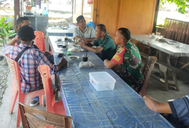 Panyabungan - Babinsa Koramil 13/Panyabungan Kodim 0212/Tapsel Serda Susito melaksanakan monitor wilayah dan komsos bersama tokoh masyarakat dan warga di satu warung kopi Desa Parbaungan Kecamatan Panyabungan Kabupaten Mandailing Natal, Sabtu (21/09/2024)