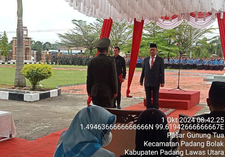 Upacara Peringatan Hari Kesaktian Pancasila Tahun 2024 dengan mengangkat Tema "Bersama Pancasila Kita Wujudkan Indonesia Emas” dipimpin oleh Sekda Kab. Paluta Bapak Makmur Harahap, ST, MM dan dihadiri oleh Ketua DPRD Kab. Paluta, Kajari Paluta, Kakan Kemenag Paluta, Para Assisten dan kepala OPD Kab. Paluta, Pabung Kodim 0212/TS Wilayah Paluta, Danramil, Kapolsek dan Ibu-ibu TP PKK Kab, Paluta serta diikuti oleh pasukan dari TNI, Polri, ASN, Ormas dan Siswa-siswi se-Kab. Paluta