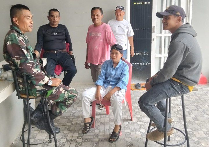 Panyabungan - Babinsa Koramil 13/Panyabungan Kodim 0212/Tapsel Serka Sugeng Widanarko melaksanakan kegiatan Komunikasi Sosial (Komsos) berinteraksi dengan warga binaan sekaligus menekankan tentang menjaga keamanan dan ketertiban lingkungan di kelurahan Huta Siantar Kecamatan Panyabungan Kabupaten Mandailing Natal, Minggu (06/10/2024)
