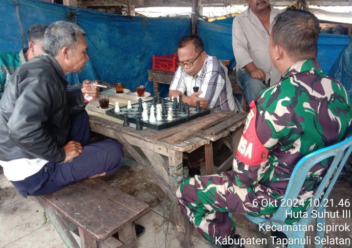 Sipirok – Dalam upaya menjalin keakraban dengan warga masyarakat di wilayah binaannya, Babinsa Koramil 03/Sipirok Kodim 0212/Tapsel Koptu Roni Saputra melaksanakan Komunikasi Sosial (Komsos) bersama warga disalah satu warung kopi di Pasar Sipirok Kecamatan Sipirok Kabupaten Tapanuli Selatan, Minggu (06/10/2024)