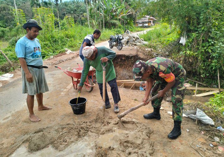 Dalam pelaksanaannya, Kata Babinsa, pihaknya membaur bersama warga dengan memperbaiki jembatan rusak