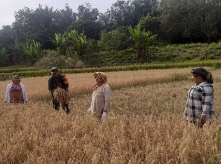 “kegiatan ini sebagai wujud dukungan TNI khususnya prajurit kewilayahan, Babinsa dalam mendukung ketahanan pangan, dengan semangat ikut serta terjun langsung ke sawah membantu petani desa binaannya saat memanen padi” ujarnya