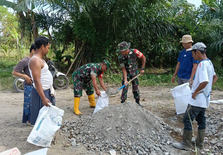 Babinsa Serda Ahmad Yamin Siregar mengatakan, pihaknya mengaku sangat senang bisa membantu warga yang telah berupaya untuk membuat jalan secara swadaya