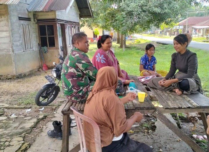 Kegiatan komsos Babinsa tak hanya tertuju kepada perangkat desa, tokoh masyarakat ataupun tokoh agama saja, kali ini sasaran Komsos yang di lakukan Babinsa Serda MP. Simamora sasarannya adalah kaum ibu-ibu yang tengah duduk duduk berkumpul bersama anak-anaknya