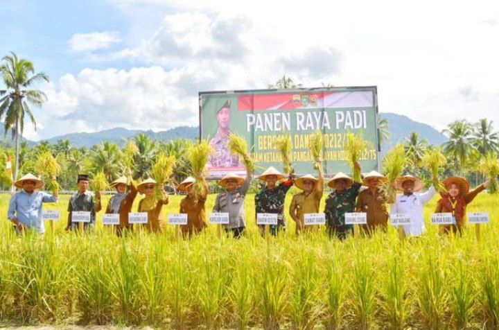 Dandim 0212/Tapsel Letkol Arm Delli Yudha Adi Nurcahyo, S.E.,M.M dalam kesempatan tersebut menyampaikan, kegiatan panen raya ini memberikan keyakinan bagi masyarakat, bahwa kita siap memenuhi kebutuhan pangan sehingga program ketahanan pangan yang dicanangkan Bapak Presiden dapat tercapai
