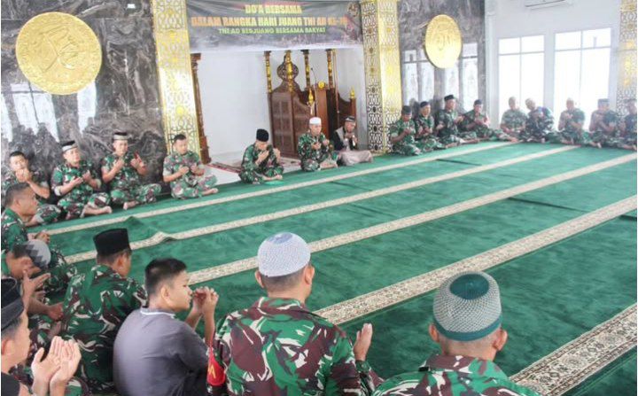 Padangsidimpuan - Dalam rangka memperingati Hari Juang Tentara Nasional Indonesia Angkatan Darat (TNI AD) ke 79 tahun 2024, Kodim 0212/Tapsel menggelar do'a bersama sebagai rasa wujud syukur, bertempat di Mesjid Al-Musannif Annas Makodim 0212/Tapsel Jln. Imam Bonjol Kec. Padangsidimpuan Selatan Kota Padangsidimpuan, Jum'at (14/12/2024)