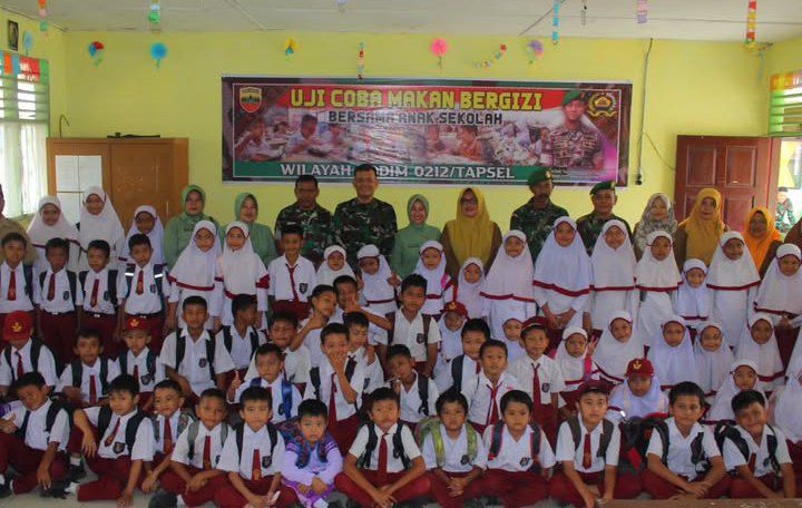 Kegiatan uji coba makanan bergizi secara gratis yang di prakarsai oleh Dandim 0212/Tapsel dan pelaksanaannya dipimpin Kasdim 0212/Tapsel mewakili Dandim didampingi Ibu Ketua Persit KCK Cab XLV Kodim 0212, Pasi Ops, Danramil 02/Kota Psp beserta anggota serta anggota Staf Teritorial Kodim 0212/Tapsel
