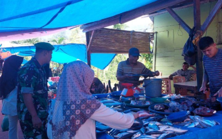 Puncak Sorik Marapi – Babinsa Koramil 14/Kotanopan Kodim 0212/Tapsel Sertu Maris melaksanakan pengecekan harga dan ketersediaan sembakol menjelang Hari Raya Natal dan tahun baru (Nataru) secara langsung di Pasar Tradisional dan kios-kios milik warga di Desa Hutanamale Kecamatan Puncak Sorik Marapi Kabupaten Mandailing Natal, Kamis (19/12/2024)