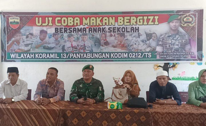 Panyabungan Utara – Dalam rangka mendukung Program Pemerintah Republik Indonesia yang merupakan program dari Bapak Presiden Prabowo Subianto dan Wakil Presiden Gibran Rakabuming Raka, Kodim 0212/Tapsel melalui Koramil 13/Panyabungan menggelar uji coba makan bergizi gratis bersama anak sekolah di Sekolah Dasar Swasta (SDS) Muhammadiyah No. 074 Desa Torbanuaraja Kecamatan Panyabungan Utara Kabupaten Mandailing Natal, Kamis (19/12/2024)