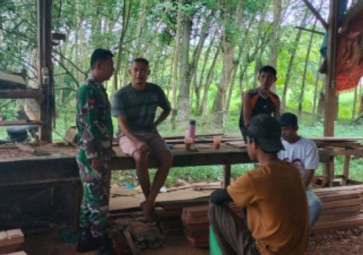 Padangsidiampuan - Babinsa Koramil 02/Kota Padangsidimpuan Kodim 0212/Tapsel Koptu Dedy Ramadhani melaksanakan Komunikasi Sosial dengan Pekerja pertukangan kayu di Desa Labuhan Labo Kecamatan Padang sidimpuan Tenggara Kota Padang Sidempuan, Jumat (17/01/2025)