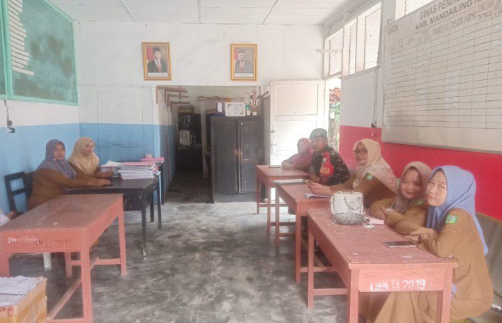 Siabu — Babinsa Koramil 12/Siabu Kodim 0212/Tapsel Sertu Miaston SimatupangSimatupang melaksanakan komsos dengan pegawai kantor Korwil Dinas Pendidikan dan juga staf, di Kecamatan Siabu Kabupaten Mandailing Natal, Selasa (21/01/2025)