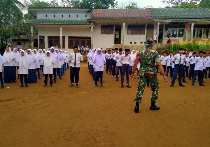 Angkola Barat - Babinsa Koramil 19/Siais Kodim 0212/Tapsel Serka Muhammad Yusuf melatih Peraturan Baris Berbaris (PBB) kepada siswa-siswi MTsN 7 Tapanuli Selatan Desa Penobasan Kecamatan Angkola Barat Kabupaten Tapanuli Selatan, Senin (21/01/2025)