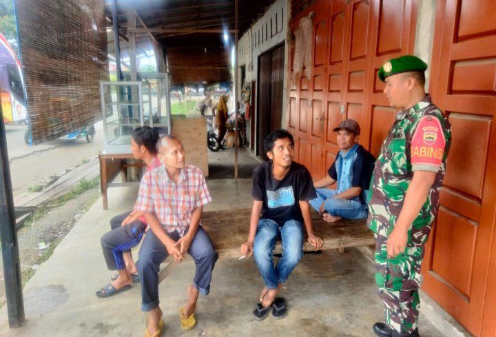 Panyabungan – Mewaspadai terjadinya bencana banjir di area pemukiman pendudukan wilayah desa binaan, Babinsa Koramil 13/Panyabungan Kodim 0212/Tapsel Koptu Asril Dalimunthe melaksanakan monitor wilayah meninjau daerah rawan banjir sekaligus melaksanakan komsos dengan warga masyarakat di Desa Sarak Matua Kecamatan Panyabungan Kabupaten Mandailing Natal, Rabu (29/01/2025)