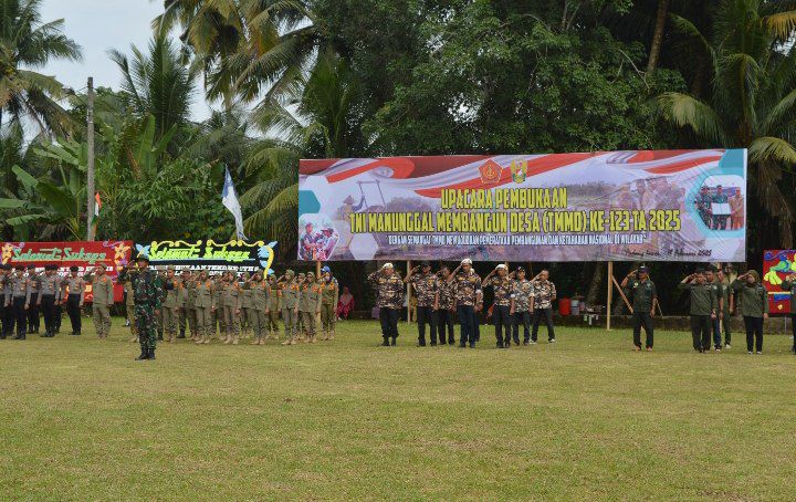 Padang Lawas - Komando Distrik Militer (Kodim) 0212/Tapsel menggelar upacara pembukaan TNI Manunggal Membangun Desa (TMMD) Reguler ke-123 TA 2025 di Lapangan Desa Pintu Padang Kecamatan Ulu Barumun Kabupaten Padang Lawas, Rabu (19/02/2025)