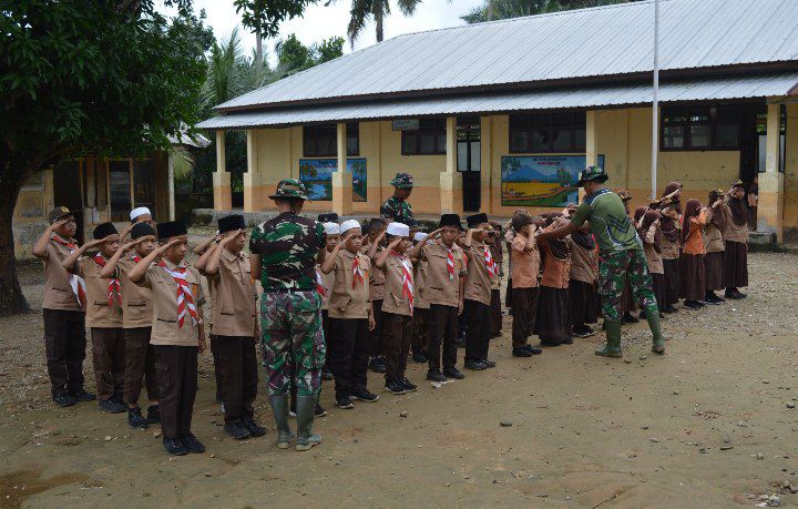 Anggota Satgas TMMD Kodim Tapsel Latih PBB Murid Sekolah Dasar