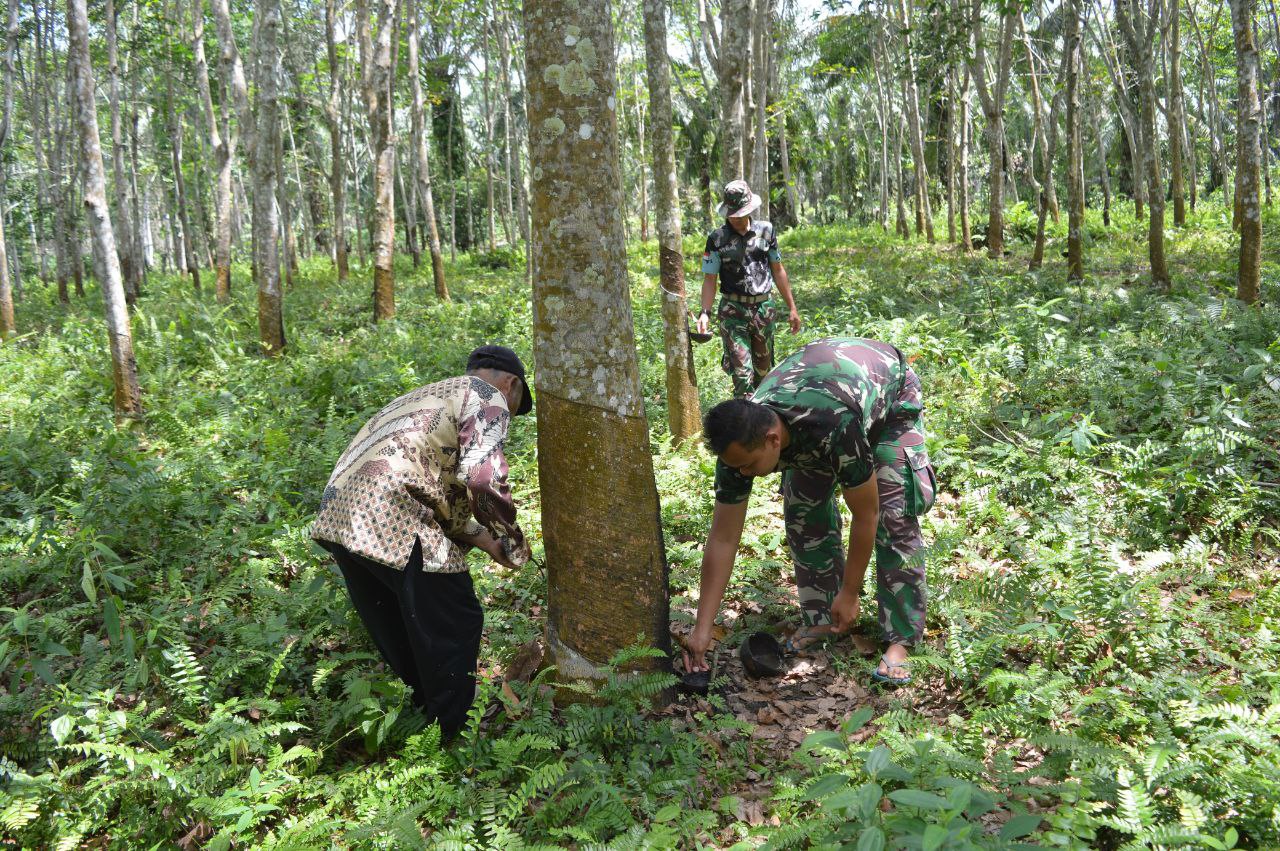 Anggota Satgas TMMD Kodim Tapsel Bantu Petani Karet
