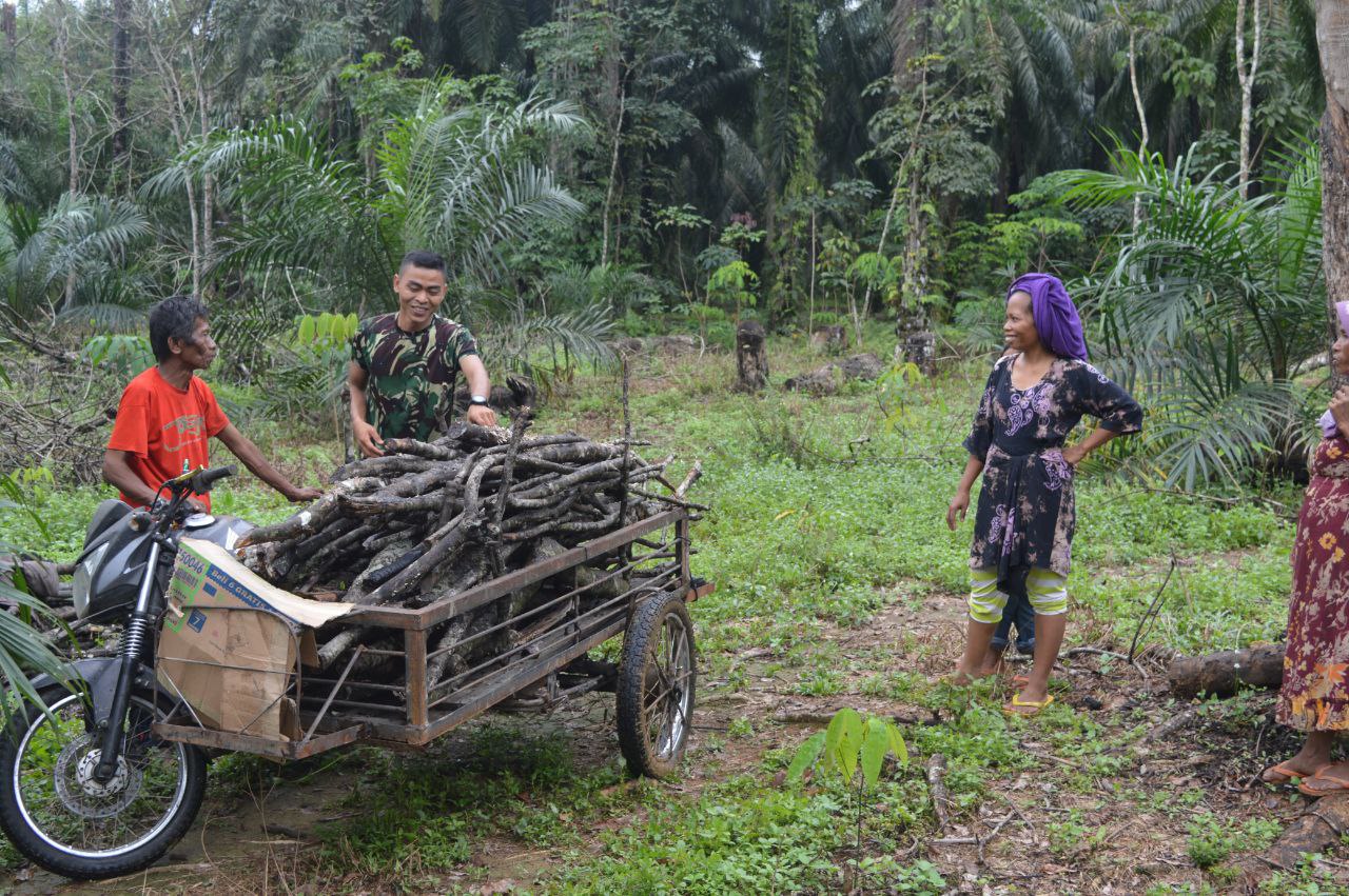 Anggota Satgas TMMD Kodim 0212/Tapsel Bantu Warga Mencari Kayu Bakar