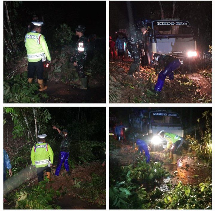 “malam ini curah hujan cukup tinggi, dan ini mengakibatkan tanah longsor dan pohon tumbang menutupi akses jalan di Desa Botung dan Desa Tolang, sehingga kendaraan baik roda dua maupun roda empat tidak dapat melintas, dan kami terus membantu mengatasi ini agar akses jalan bisa dilintasi kendaraan” papar Danramil