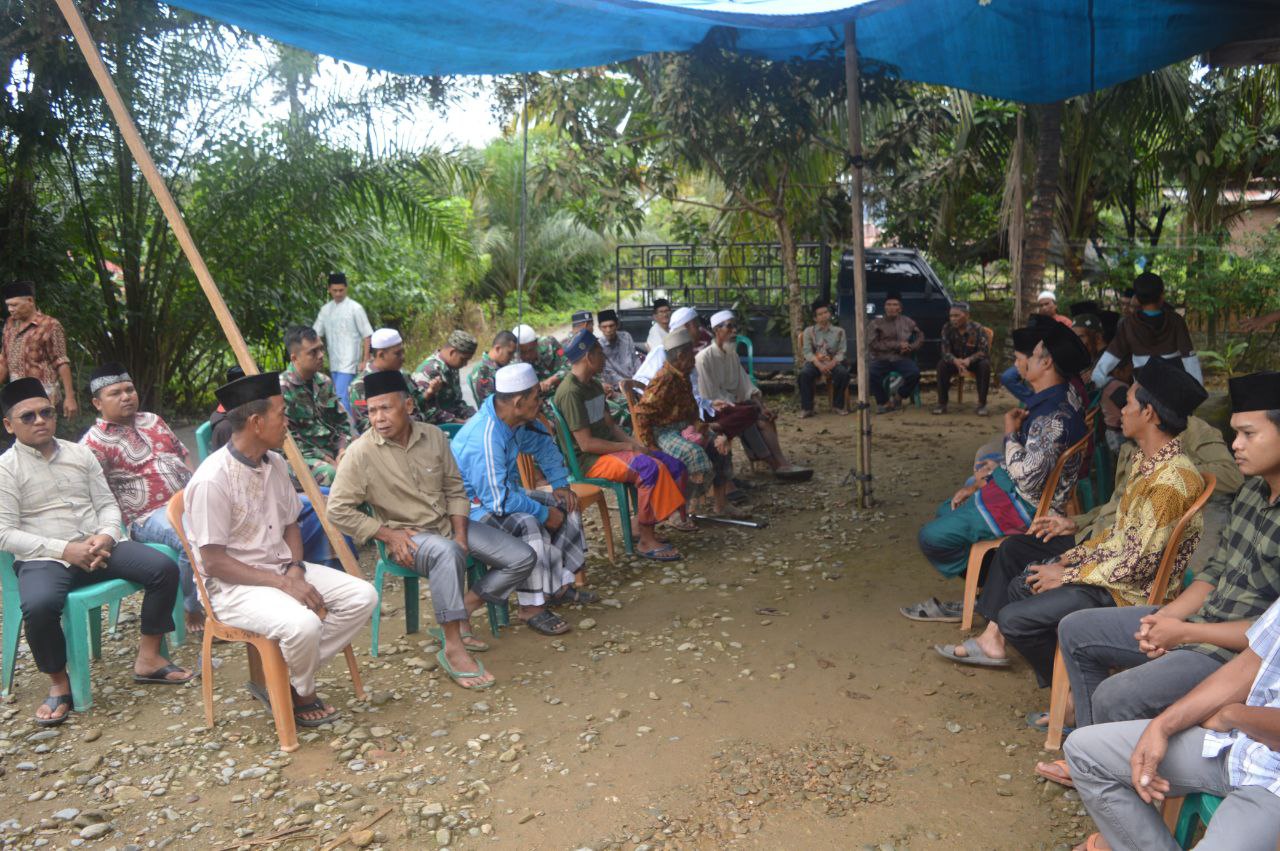 Sejumlah anggota Satgas TMMD ikut mendoakan salah seorang warga yang diketahui bernama Alikahar Daulay yang meninggal dunia karena sakit di usia 50 Tahun