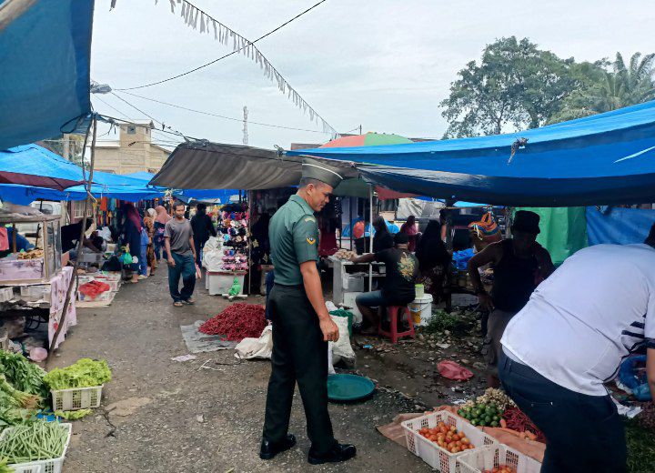 Lingga Bayu – Dalam rangka menyambut Hari Raya Idul Fitri 1446 Hijriah, Babinsa Koramil 16/BN Kodim 0212/Tapsel Seda Lukman Harun melaksanakan monitoring sembako di Pasar Tradisional Kelurahan Tapus Kecamatan Lingga Bayu Kabupaten Mandailing Natal, Senin (24/05/2025)