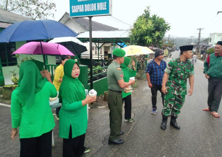 Saipar Dolok Hole - Dalam semangat kepedulian dan kebersamaan di bulan Suci Ramadan, Koramil 04/SDH Kodim 0212/Tapsel dipimpin langsung Danramil Lettu Arh Muhammad Yusuf bersama seluruh anggota Babinsa dan Persit KCK Ranting 05 SIpagimbar melaksanakan kegiatan pembagian takjil kepada masyarakat sekitar dan pengguna jalan, Rabu (28/03/2025).
