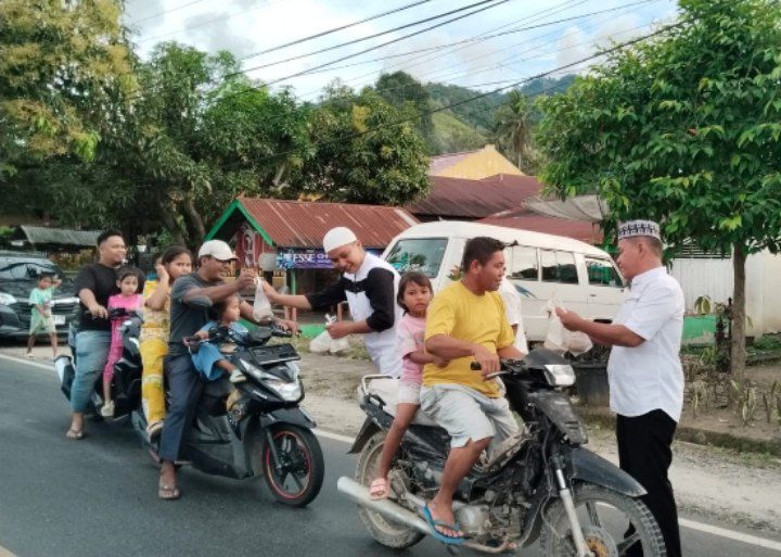 Batang Angkola - Koramil 11/Batang Angkola Kodim 0212/Tapsel melaksanakan kegiatan berbagi takjil Ramadhan kepada masyarakat dan pengguna jalan yang melintasi jalan depan Makoramil 11/Batang Angkola Kelurahan Pintu Padang Kecamatan Batang Angkola Kabupaten Tapanuli Selatan, Rabu (26/03/2025)