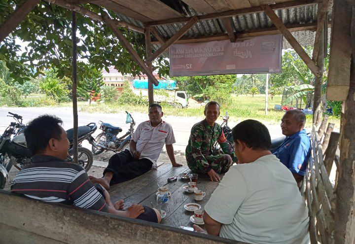 Batang Onang - Babinsa Koramil 07/Sosopan Kodim 0212/Tapsel Kopda Rudy Faisal Lubis Melaksanakan Komsos (Komunikasi sosial) dengan tokoh Masyarakat tentang pentingnya menjaga kerukunan antar warga di Desa Bonan Dolok Kecamatan Batang Onang Kabupaten Padang Lawas Utara, Kamis (03/04/2025)