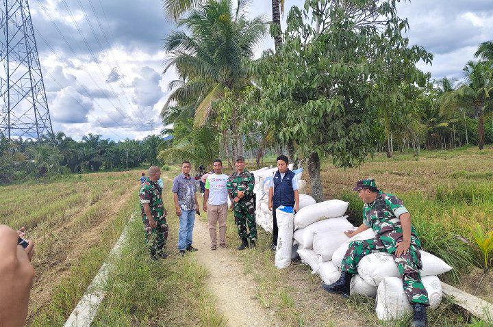Siabu - Dalam rangka percepatan serapan gabah dan untuk mendukung peningkatan kesejahteraan petani dan memastikan stabilitas harga hasil panen, Pasiter Kodim 0212/Tapsel dan Danramil 12/Siabu beserta dan anggota Babinsa bersama Tim Serap Gabah Bulog KC. Padangsidimpuan melaksanakan pendampingan penyerapan gabah petani di Kecamatan Siabu Kabupaten Mandailing Natal (Madina), Sumatera Utara, Kamis (10/04/2025)
