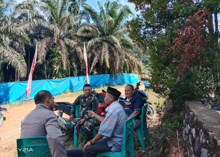 Ranto Baek - Babinsa Koramil 16/BN Kodim 0212/Tapsel Sertu Maloan Hasibuan bersama Bhabinkamtibmas melaksanakan komsos dengan tokoh masyarakat di wilayah binaan di Desa Rantau Panjang Kecamatan Ranto Baek Kabupaten Mandailing Natal, Minggu (13/04/2025)