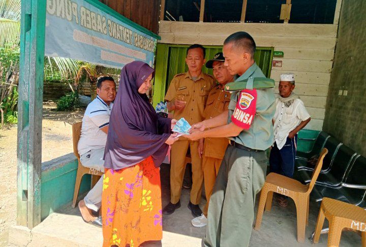 Sosa – Babinsa Koramil 09/Sosa Kodim 0212/Tapsel Serka Bornok Siregar melaksanakan pendampingan pada penyaluran Bantuan Langsung Tunai (BLT) Dana Desa (DD), di Desa Pasar Ujung Batu, Kecamatan Sosa Kabupaten Padang Lawas, Sabtu (19/04/2024)