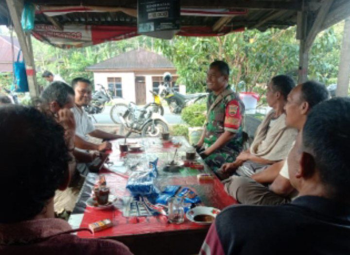 Marancar – Babinsa Koramil 01/Batang Toru Kodim 0212/Tapsel Serka BM. Ritonga sembari minum kopi di warung, melaksanakan Komsos berkumpul dengan warga masyarakat di Desa Tanjung Dolok Kecamatan Marancar Kabupaten Tapanuli Selatan, Minggu (27/04/2025)