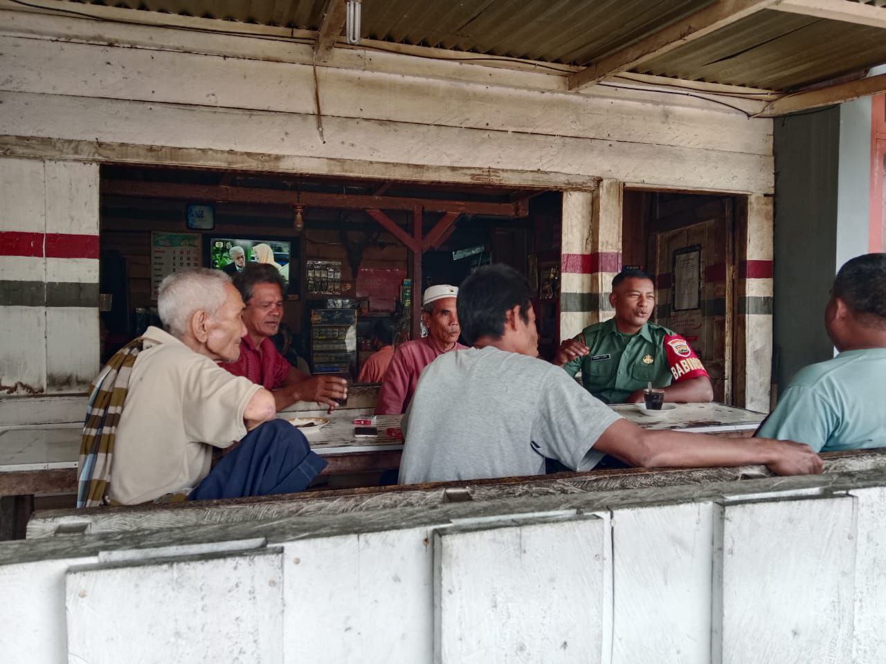 Dalam kesempatan tersebut, suasana penuh rasa kekeluargaan, canda tawa mengiringi obrolan Babinsa Koptu Rahmad S Lubis dengan warga di sebuah warung kopi, secangkir kopi hadir ditengah-tengah obrolan mereka.