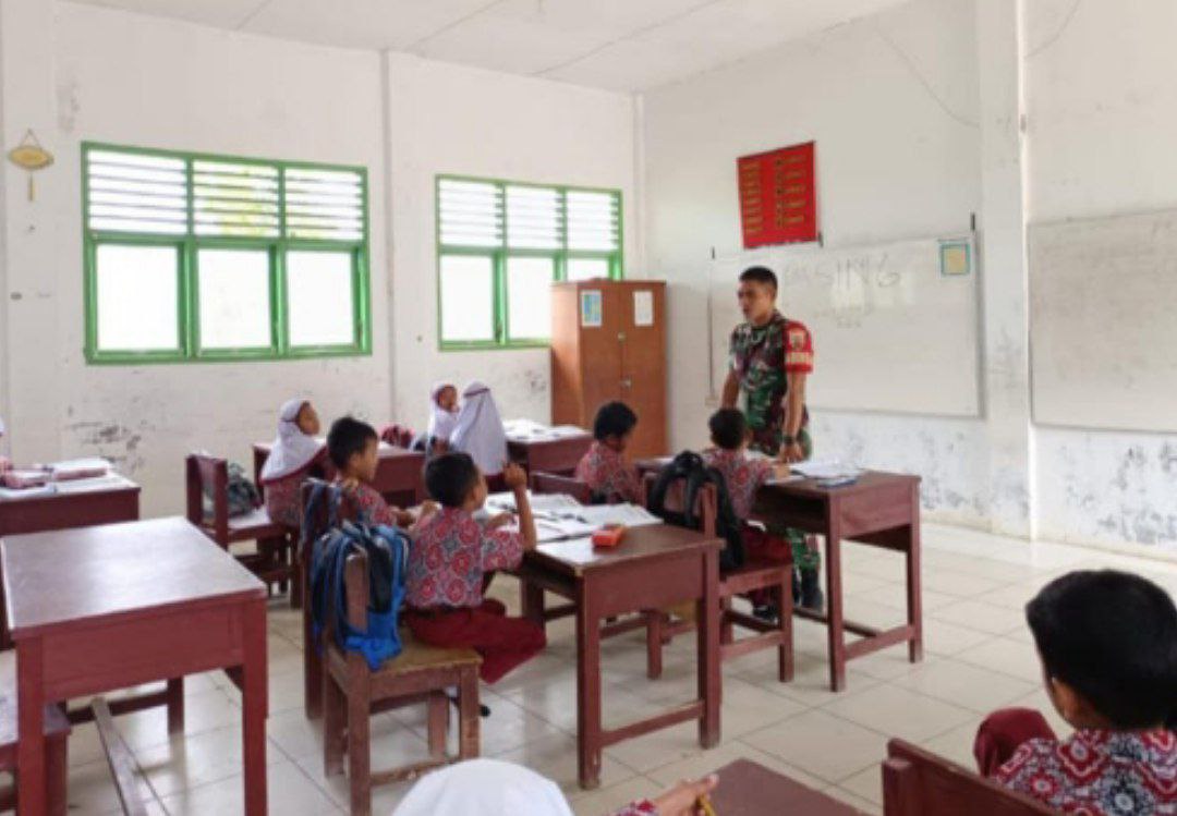 Babinsa Koramil 02/Kota Padangsidimpuan Ajari Siswa-siswi SD Belajar Matematika Dasar Metode Gasing