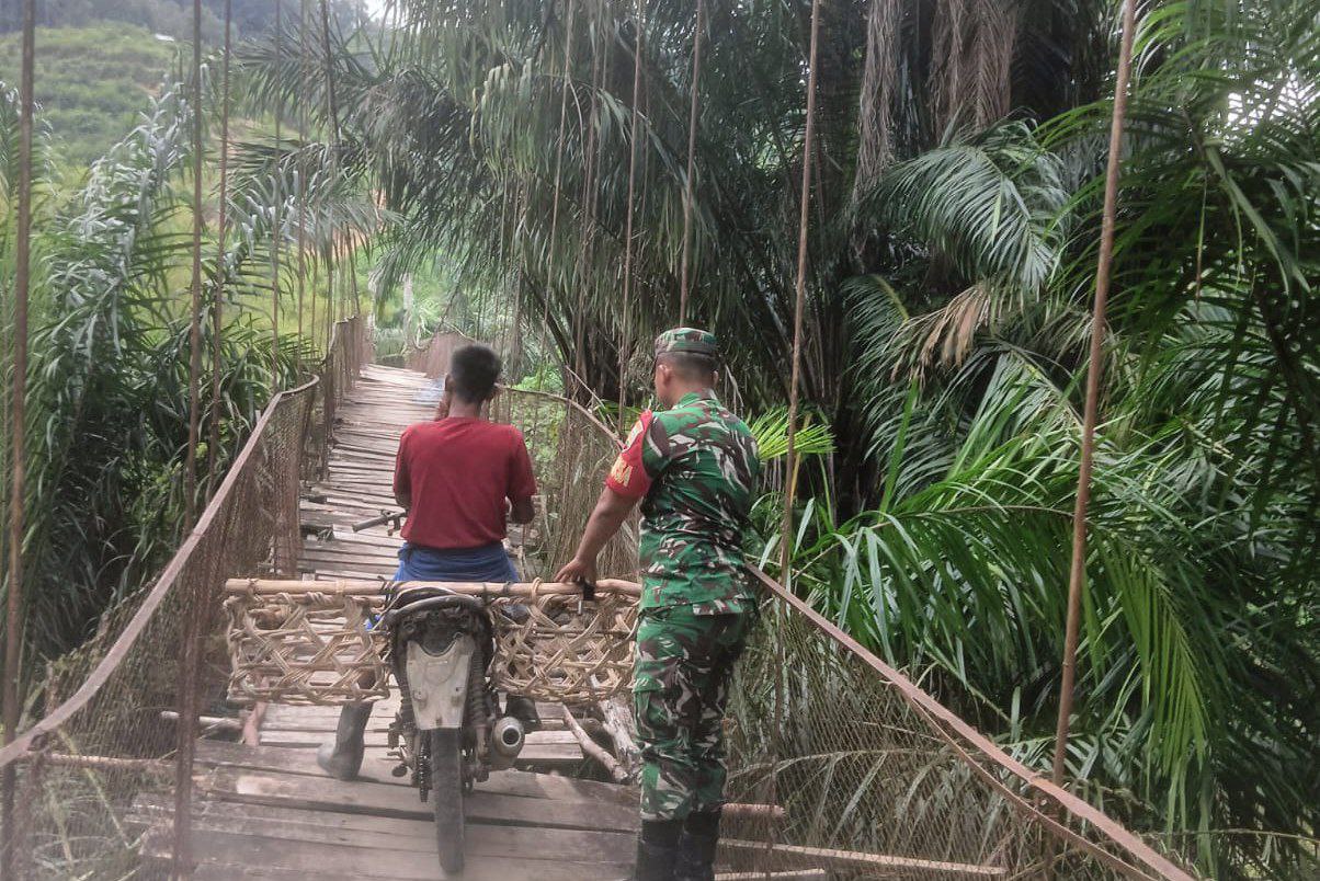 Dikatakan Babinsa Pratu Alwi, bahwa pihaknya memonitor dan membantu para warga saat melintasi jembatan gantung guna kelancaran warga saat melintas