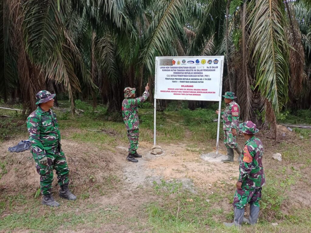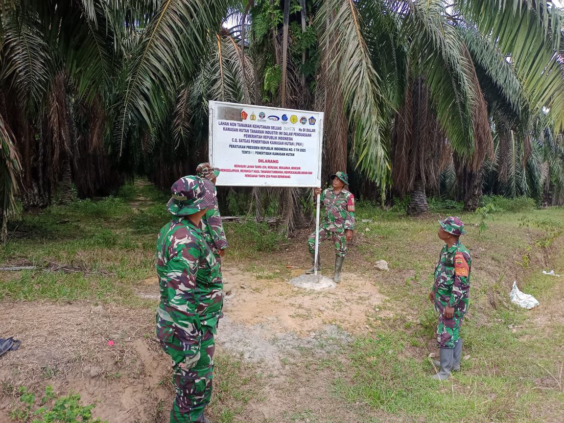 Seperti hari ini, Satgas PKH yang dipimpin Peltu Maja Silalahi bersama 5 orang melaksanakan patroli dan pengawasan lahan dan pengecekan plang juga melaksanakan komsos dengan warga masyarakat di Desa Huta Pasir Kecamatan Simangambat Kabupaten Padang Lawas Utara (Paluta), Sabtu (05/07/2025)