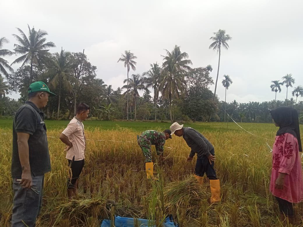 Babinsa Koramil 08/Barumun Dampingi Petana Dukung Ketahanan Pangan dengan Membantu Petani Panen Padi