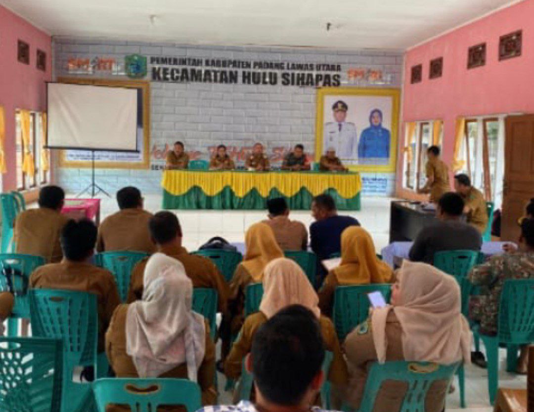 Hulu Sihapas – Babinsa Koramil 18/Pargarutan Kodim 0212/Tapsel Pelda Taufik Hidayat melaksanakan kegiatan Rapat koordinasi wilayah Kecamatan Hulu Sihapas dalam dalam rangka menyambut HUT RI ke-80 yang dilaksanakan di Aula kantor Camat Hulu Sihapas Kecamatan Kabupaten Padang Lawas Utara, Selasa (15/07/2025)
