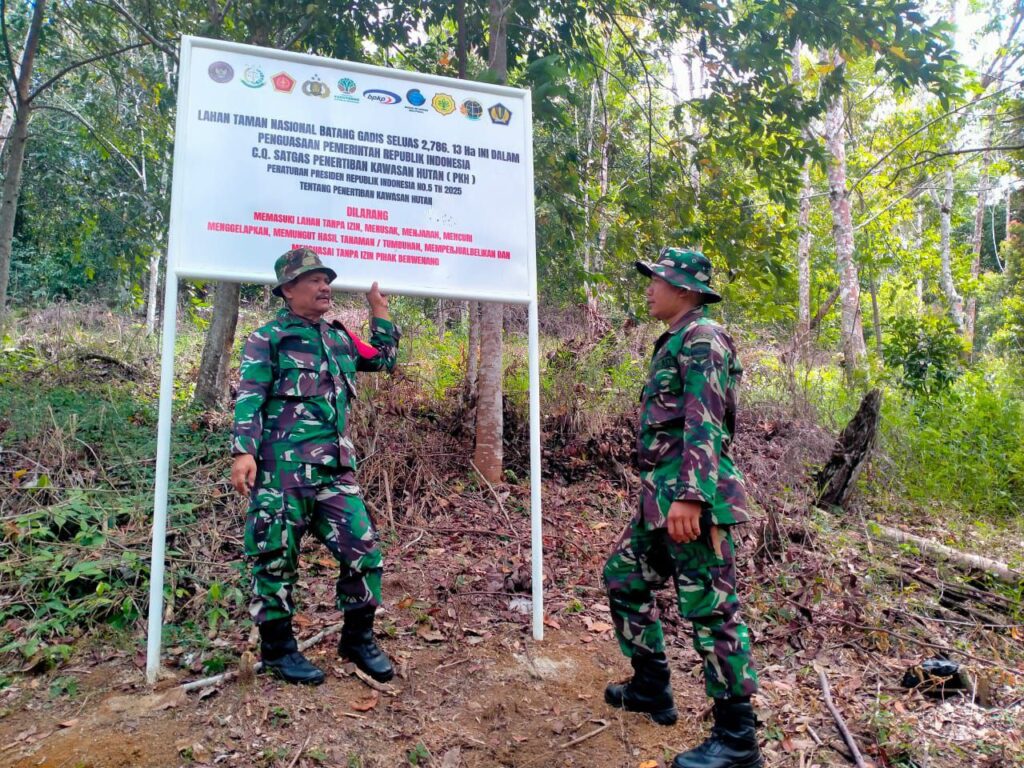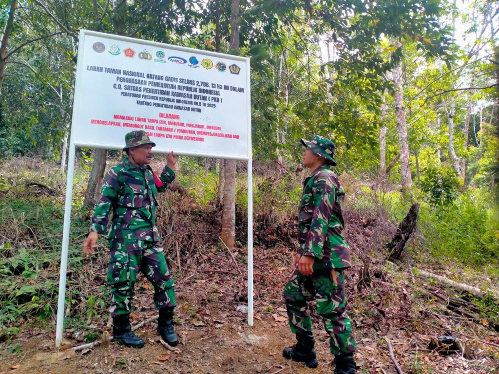 Panyabungan – Kegiatan Penertiban Kawasan Hutan terus dilaksanakan oleh Satuan Tugas Penertiban Kawasan Hutan (Satgas PKH) di wilayah Kabupaten Mandailing Natal melalui kegiatan Patroli dan Sosialisasi memberikan edukasi kepada masyarakat di sekitar kawasan hutan Taman Nasional Batang Gadis (TNBG) di Desa Aek Ngali dan Lumban Dolok Kecamatan Panyabungan Selatan Kabupaten Mandailing Natal, Rabu (16/07/2025)