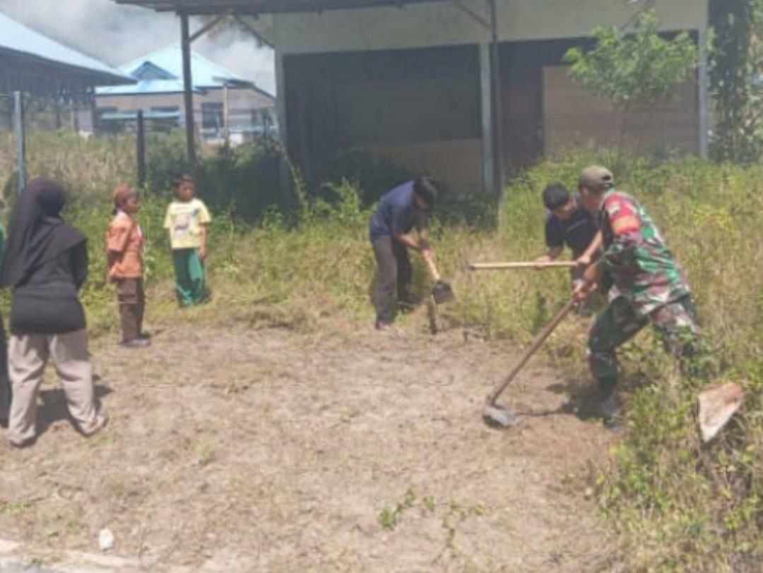 Ulu Pungkut – Babinsa Koramil 14/Kotanopan Kodim 0212/Tapsel Sertu Sukri bersama para pemuda dan remaja desa Tolang melaksanakan kerja bakti pembersihan lingkungan seputaran wilayah Desa Tolang Kecamatan Ulu Pungkut Kabupaten Mandailing Natal, Minggu (21/07/2025)