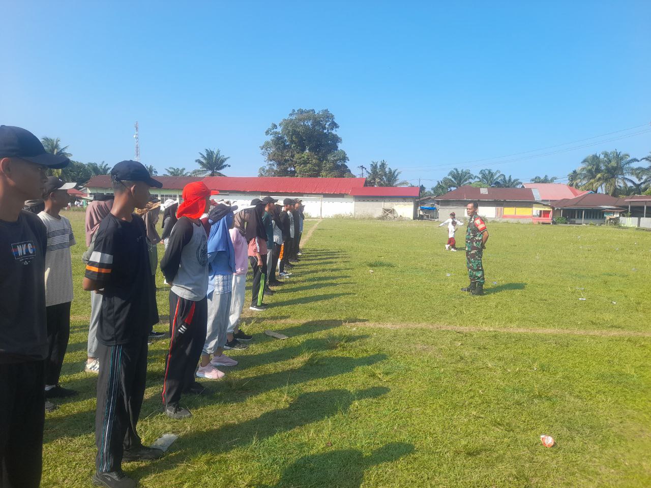 Hal dilakukan Babinsa Serka Edi Marwansyah saat dirinya memulai kegiatan latihan para siswa-siswi sebagai pertugas pengibar bendera menyambut HUT RI ke-80 tingkat Kecamatan batahan bertempat di Lapangan Upacara Kecamatan Batahan Kabupaten Mandailing Natal, Senin (28/07/2025)