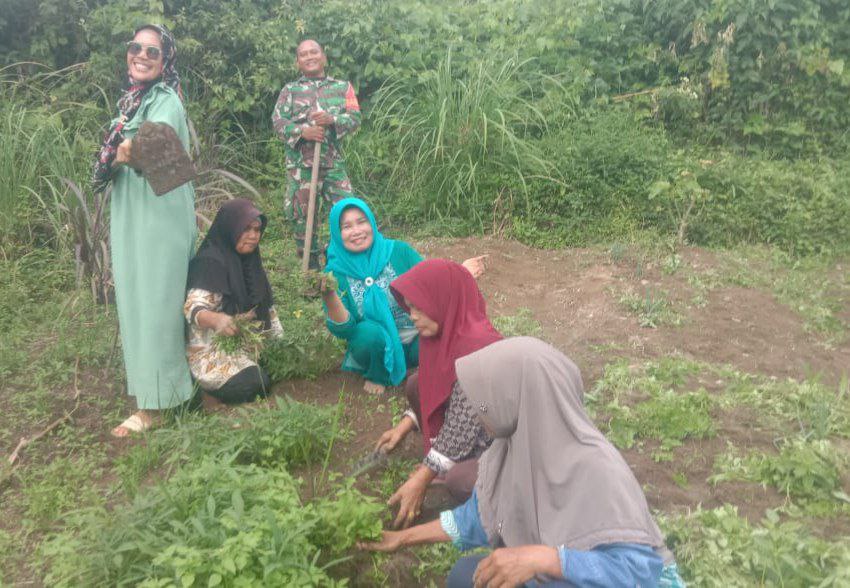 “hari ini kita bersama ibu-ibu melaksanakan perawatan tanah, sasarannya membersihkan rumput yang mulai tumbuh di sekitar tanaman sayuran” ujar Babinsa