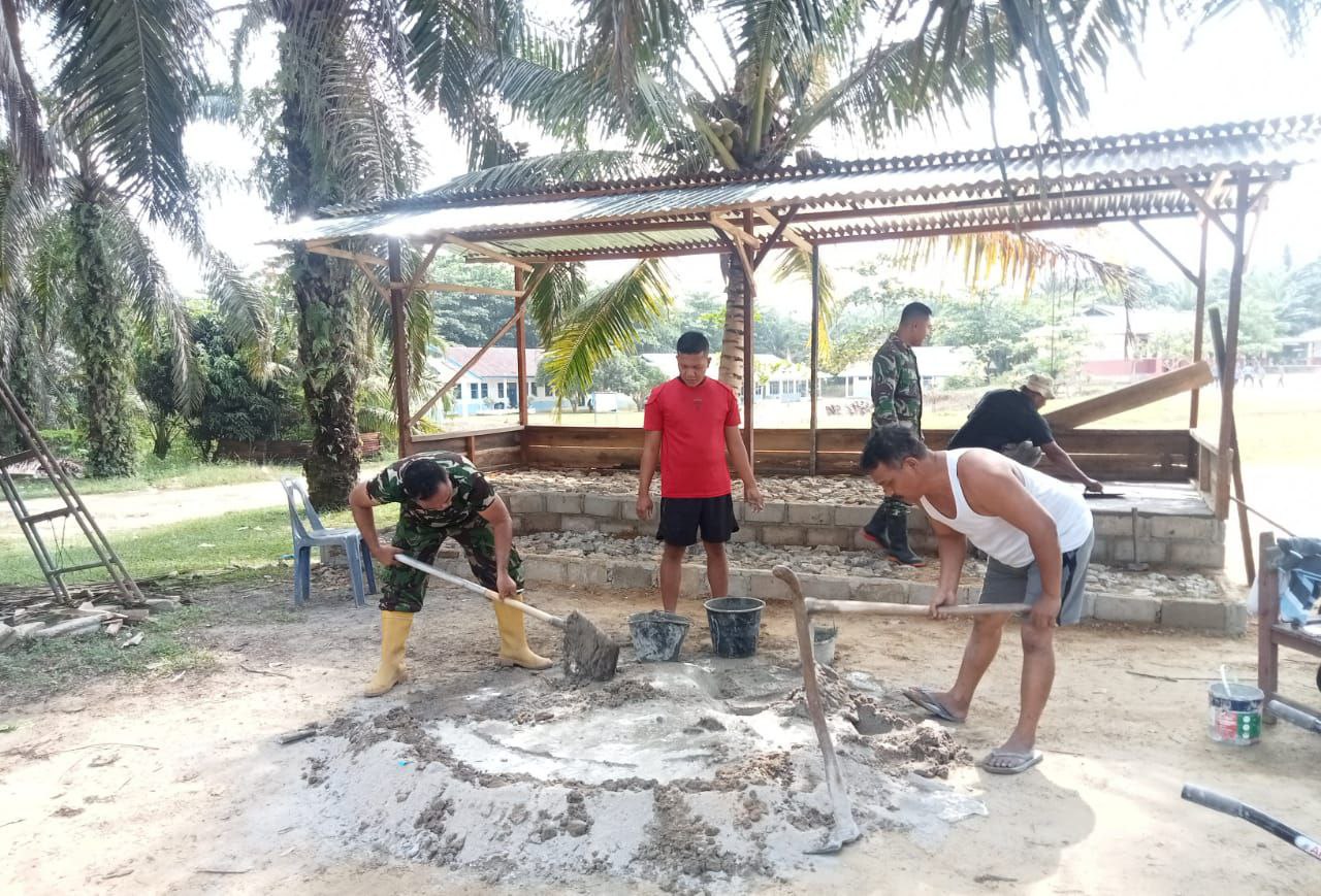 Babinsa Koramil 05/PB Bantu Warga Bangun Pondok Jualan di Kelurahan Pasar Gunung Tua