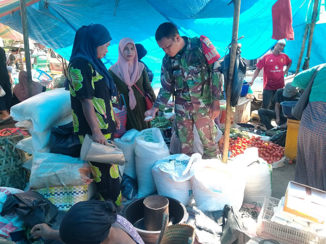 Angkola Timur - Babinsa koramil 18/Pargarutan Kodim 0212/Tapsel rutin melakukan kegiatan keliling pasar tradisional untuk memantau stabilitas harga dan ketersediaan sembako (kebutuhan pokok) serta memastikan tidak ada praktik penimbunan yang dapat merugikan masyarakat