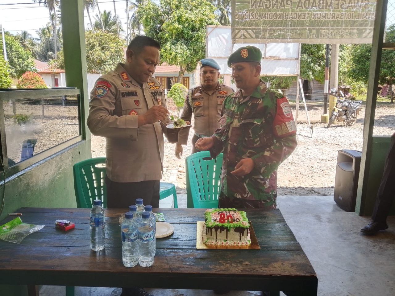 Usai sambutan, kegiatan dilanjutkan dengan pemotongan kue ulang tahun dan nasi tumpeng, yang disaksikan bersama oleh anggota TNI dan Polri. Suasana penuh kehangatan dan kekeluargaan tampak dalam sesi foto bersama antara kedua institusi.